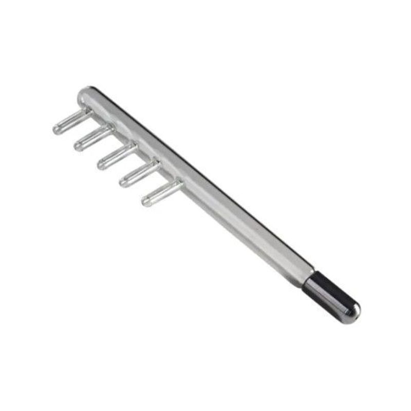 O Eletrodo de Vidro Pente Ozotec é um acessório desenvolvido para utilização em aparelhos de alta frequência, sendo amplamente utilizado em tratamentos estéticos capilares. Fabricado em vidro especial com gás interno, o eletrodo conduz as correntes de alta frequência geradas pelo equipamento, auxiliando em procedimentos que estimulam a circulação no couro cabeludo, promovem ação bactericida e contribuem para a revitalização capilar. Seu formato em pente permite a aplicação direta no couro cabeludo, facilitando a distribuição uniforme da corrente de alta frequência entre os fios durante o tratamento. O acessório possui encaixe simples e prático nos aparelhos compatíveis, proporcionando maior facilidade no manuseio durante os procedimentos estéticos. Fabricado com material resistente e de alta qualidade, o eletrodo oferece durabilidade e eficiência para uso em clínicas de estética e por profissionais da área.