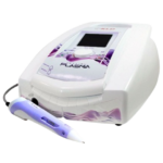 - Através de uma corrente elétrica alternada de alta tensão, o gerador emite uma faísca luminosa, conhecida como arco voltaico, e se dá entre o aplicador e a pele a uma distância na ordem de milímetros gerando o jato de plasma. Dessa forma é obtida a energia plasmática controlada capaz de ionizar os gases atmosféricos e promover o tratamento de estruturas cutâneas indesejadas com segurança e precisão na região de tratamento não causando danos a pele sadia periférica;