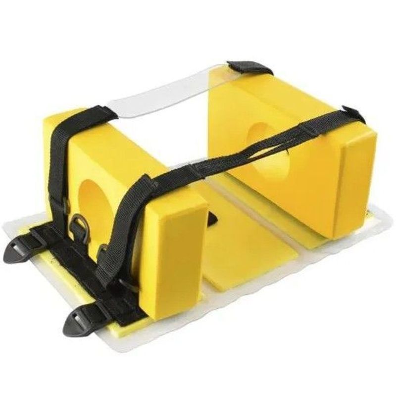 Fabricado em ABS de alta resistência, o imobilizador é impermeável, lavável e durável, ideal para uso em ambientes de emergência e atendimento pré-hospitalar. Sua base é fixada diretamente na prancha por meio do tecido reforçado, oferecendo firmeza e estabilidade durante o transporte.