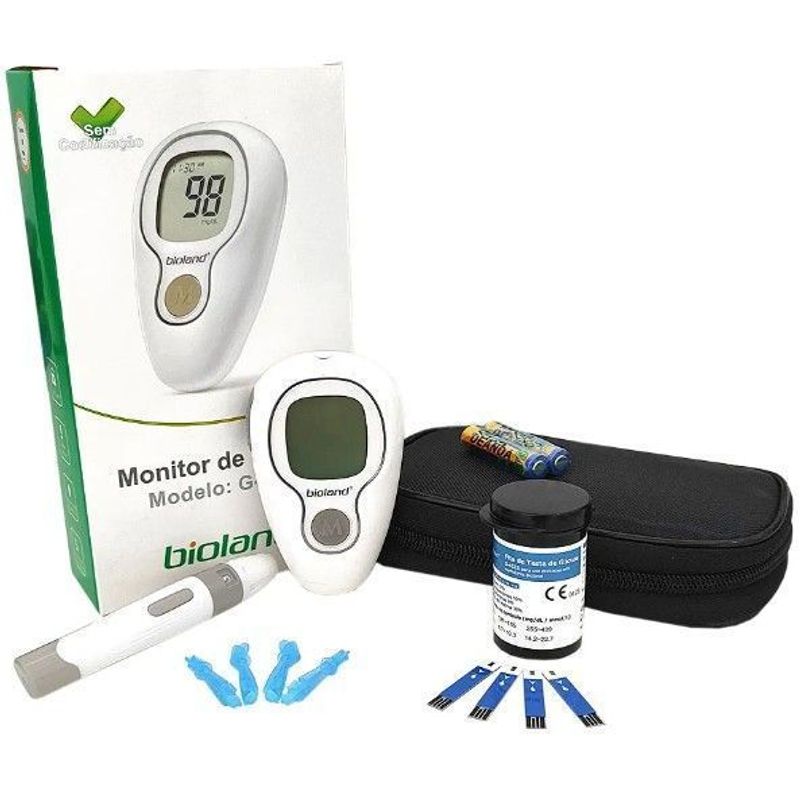 Kit Medidor de Glicose Bioland é um conjunto desenvolvido para realizar a medição rápida e prática dos níveis de glicose no sangue. Indicado para uso doméstico ou profissional, o kit permite o monitoramento da glicemia capilar de forma simples, auxiliando no acompanhamento da saúde e no controle do diabetes no dia a dia. O aparelho realiza a leitura da glicose a partir de uma pequena amostra de sangue aplicada na fita reagente, apresentando o resultado em poucos segundos no visor digital. O sistema utiliza tecnologia amperométrica com enzima de glicose oxidase, garantindo medições precisas e confiáveis. Além disso, o equipamento conta com memória para armazenar diversas medições, facilitando o acompanhamento histórico dos resultados. Compacto e fácil de transportar, o kit acompanha os acessórios necessários para a realização dos testes, tornando o monitoramento da glicemia mais prático tanto em casa quanto em clínicas e consultórios.