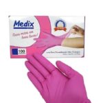 Luva Nitrilica Rosa (Sem Talco) com 100un | Tamanho PP – MEDIX