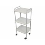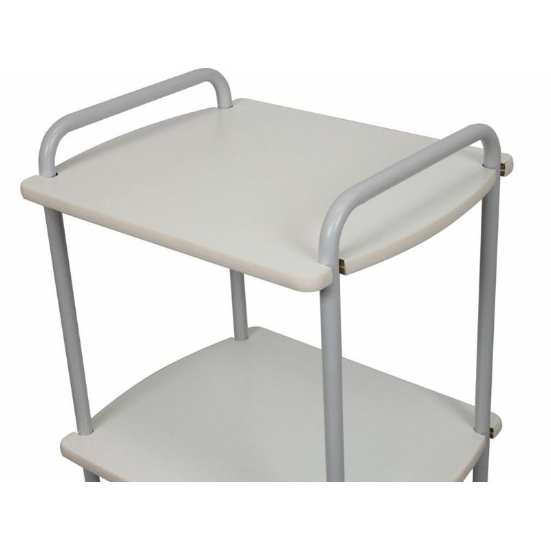 A Mesa Auxiliar Arktus (03 Prateleiras com Alças) é a solução inteligente para clínicas, consultórios, salões de beleza e outros espaços profissionais que necessitam de organização, mobilidade e higiene em seu ambiente de trabalho. Fabricada em aço carbono 1020 com pintura epóxi branca, oferece impermeabilização total da superfície e excelente resistência química e à abrasão.