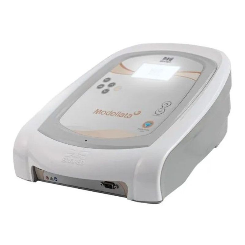 O Modellata é um aparelho de massagem vibro-oscilatória, que combina forças verticais e paralelas para promover uma profunda mobilização nos tecidos (pele, tela subcutânea e músculos). O aparelho acompanha 4 ponteiras que vibram e fazem uma rotação ao redor do eixo do aplicador, substituindo a massagem manual e otimizando os resultados, pois consegue maior profundidade na mobilização dos tecidos. Além do efeito terapêutico por vibração oscilatória e do impacto tecidual, o equipamento possui integrado às ponteiras, imãs estáticos que complementam a terapia Modellata. A terapia magnética é uma prática médica alternativa que utiliza ímãs estáticos para aliviar a dor e outros problemas de saúde. A rotação dos aplicadores pode ser realizada nos modos contínuo e sweep. O modo sweep é desenvolvido com frequência ajustável de 10 a 60 ciclos por segundo, por meio de uma rampa que oscila entre alta e baixa frequência. As ponteiras podem ser facilmente encaixadas e removidas, por meio de alavancas de conexão, para facilitar a rotina de atendimentos. Um diferencial é o controle de intensidade da frequência no prórpio aplicador, por meio de botões que permitem aumentar ou reduzir a frequência durante o tratamento, sem a necessidade de reprogramar na tela do aparelho. E falando em facilidade, o Modellata possui 9 protocólos pré-programados e permite a programação de outros 20 protocolos personalizados. Cada ponteira possui protocolos específicos, direcionados especialmente para estímulo da mircrocirculação, aumento da nutrição e oxigenação do tecido. O Modellata pode ser utilizado em protocolos de estética e reabilitação e o mais legal é que ao escolher o protocolo o próprio aparelho indica a ponteira ideal para a realização da massagem.