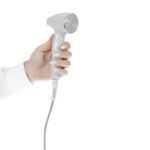 - Sistema moderno de segurança: a aplicação é interrompida automaticamente ao ultrapassar 41°C, protegendo o cristal piezoelétrico do cabeçote e evitando lesões no paciente.